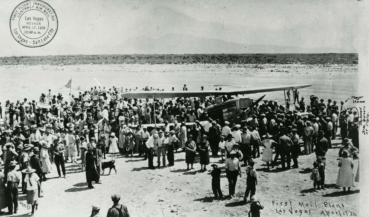 1926Las Vegas was incorporated into the new U.S. Highway System with Route 91 replacing the Arrowhead Hwy. That same year, Las Vegas became a stop on the expanding airmail network, giving the community a leap forward in communication.